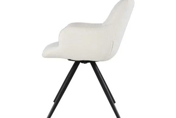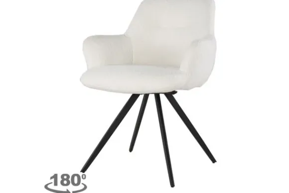 Eetkamerstoel Doreen Boucle White van het merk Livingfurn is verkrijgbaar in verschillende kleuren. De stoel is voorzien van een stijlvolle boucléstof. Bouclé is een zacht en luchtig geweven stof, die een warme uitstraling heeft. De zwarte stalen stoelpoten zorgen dat de stoel stabiel op de grond staat. Deze stoel is 180 graden draaibaar.