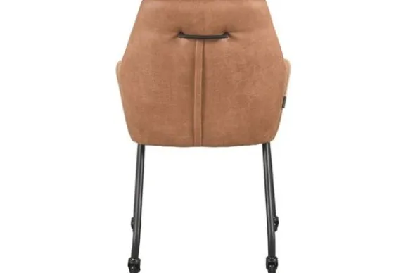 De eetkamerstoel, gestoffeerd met cognac kleurig micro suède, heeft een forse zitting met armleuningen, wat bijdraagt aan het hoge comfort van de stoel. Lenny is extra handig omdat deze stoel voorzien is van wieltjes en een handvat aan de achterkant van de rugleuning. De combinatie van de wielen en het greepje zorgen ervoor dat de Lenny een mobiele eetstoel is, die heel gemakkelijk is aan te schuiven aan de eettafel. Kortom, Lenny is de perfecte eetkamerstoel voor wie op zoek is naar een handige én comfortabele eetkamerstoel, met een moderne uitstraling.