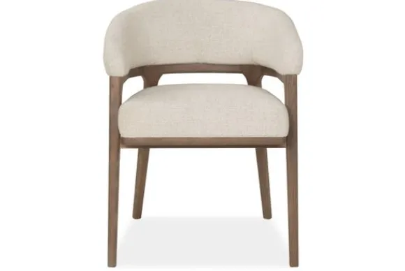 Het houten frame brengt een rustieke charme en een natuurlijke balans in het geheel. De rechte poten en afgeronde details geven de stoel een solide, maar luchtig karakter.