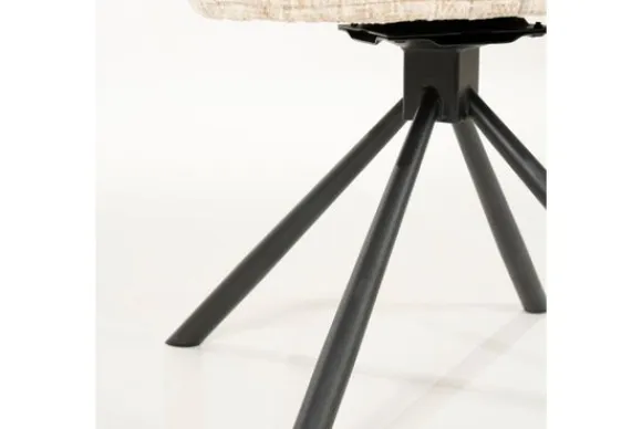 Het zwarte metalen onderstel biedt stevigheid en gebruiksgemak in één. Deze combinatie van zachte stof en stoer metaal geeft de stoel een speels contrast.