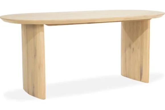Eettafel Dex van het merk Eleonora is beschikbaar in verschillende afmetingen. Het ovale tafelblad, vervaardigd uit massief eikenhout, straalt natuurlijke warmte en verfijning uit. Elk stuk eikenhout is uniek – de rijke nerven en subtiele noesten vertellen hun eigen verhaal, waardoor geen twee tafels exact hetzelfde zijn. Deze natuurlijke variaties geven de tafel een authentiek karakter en zorgen voor een levendig, zintuiglijk oppervlak.