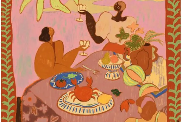 Schilderij Lunch With the Ladies is verkrijgbaar in verschillende afmetingen. Daarnaast is de afbeelding ook verkrijgbaar als wandkleed en art print.