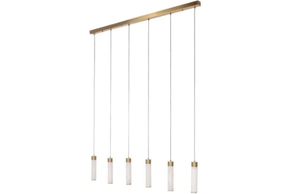 Hanglamp Elaris 214469 van het merk Richmond Interiors is een stijlvolle lamp met zes pendels, elk gemaakt van Spaans albast. Dit natuurlijke gesteente staat bekend om zijn zachte, doorschijnende structuur die het licht op een warme manier doorlaat.