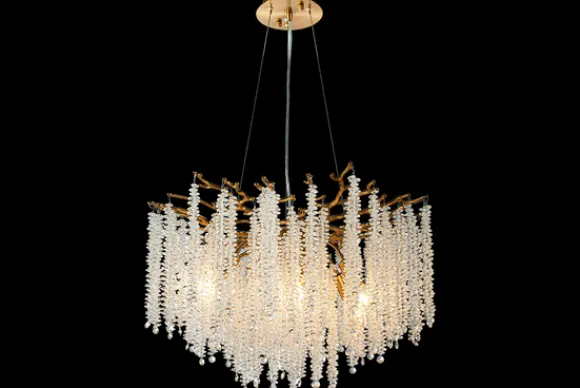 Hanglamp Baroc van Masterlight brengt luxe en elegantie samen in één ontwerp. De goudkleurige takstructuur is rijkelijk versierd met kristallen strengen die het licht prachtig weerkaatsen. Het ontwerp geeft direct een chique uitstraling en maakt van elke ruimte een stijlvolle eyecatcher.