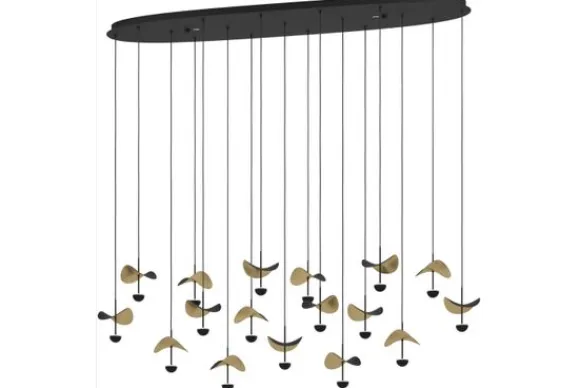 Hanglamp Dracera van het merk Eglo is een speelse lamp met gebogen gouden blaadjes en strakke lampjes eronder. Deze desinghanglamp geeft een gezellige sfeer in je woonruimtes. Dim de lamp voor de meer knusse momenten of zet het licht juist feller wanneer je bijvoorbeeld gezellig een spelletje aan het spelen bent. De hanglamp heeft op verschillende hoogtes 17 goudkleurige gebogen blaadjes, 17 en zwartkleurige lampen en is in het zwart afgewerkt. De hanglamp is incusief de lichtbronnen.
