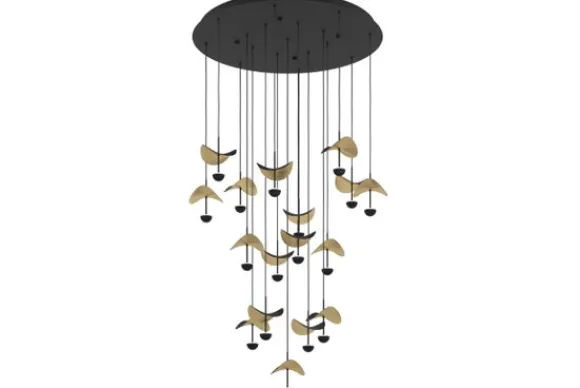 Hanglamp Dracera van het merk Eglo is een speelse lamp met gebogen gouden blaadjes en strakke lampjes eronder. Deze desinghanglamp geeft een gezellige sfeer in je woonruimtes. Dim de lamp voor de meer knusse momenten of zet het licht juist feller wanneer je bijvoorbeeld gezellig een spelletje aan het spelen bent. De hanglamp heeft op verschillende hoogtes 17 goudkleurige gebogen blaadjes, 17 en zwartkleurige lampen en is in het zwart afgewerkt. De hanglamp is incusief de lichtbronnen.