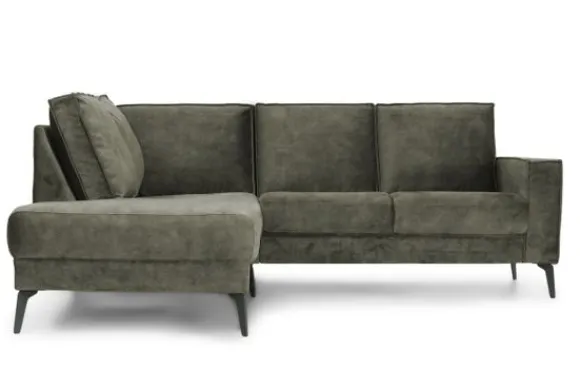 Hoekbank Sharida van het merk Danish Design is beschikbaar in alle kleuren en in diverse materiaalsoorten zoals stof, velvet en rundleder. Je kunt kiezen uit diverse afmetingen. Dit bankstel oogt ruimtelijk dankzij de smalle armleuning en de hoge metalen hoekpootjes. De rugkussens zijn afgewerkt met stoere geknepen naden.