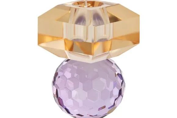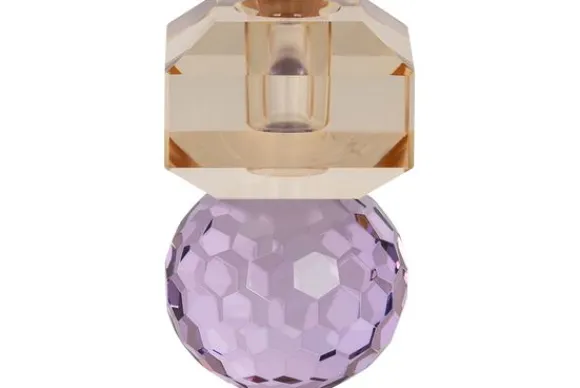 Kandelaar Mirne 212179 van het merk richmond Interior is vervaardigd uit glas. De kandelaar heeft een unieke uitstraling door de verschillende vormen. De kandelaar is doorzichtig paars van kleur en is geschikt voor dinerkaarsen.