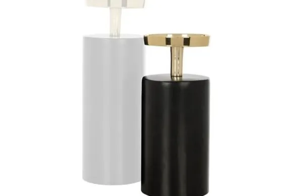 Kandelaar Caya Black Gold Klein 211584 van het merk Richmond Interiors is gemaakt van aluminium. De chique kandelaar heeft een afmeting van H21xØ9 cm en is geschikt voor stompkaarsen. De kandelaar is ook verkrijgbaar in een groter formaat die perfect met deze kandelaar te combineren is.