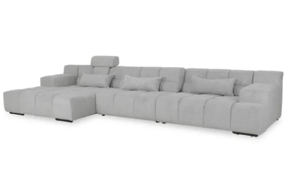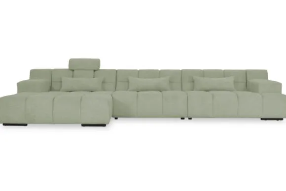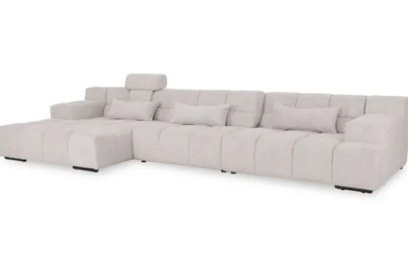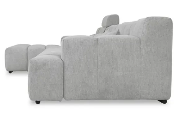 Dit bankstel is samen te stellen in vele afmetingen en verschillende opstellingen, of kies uit een van de standaard opstellingen. Ook kan je kiezen uit mat zwarte of chroom pootjes en zijn er bijpassende hoofdsteunen, sier- en lendekussens en poefjes beschikbaar. Deze worden uitgevoerd in dezelfde stof als de bank.
