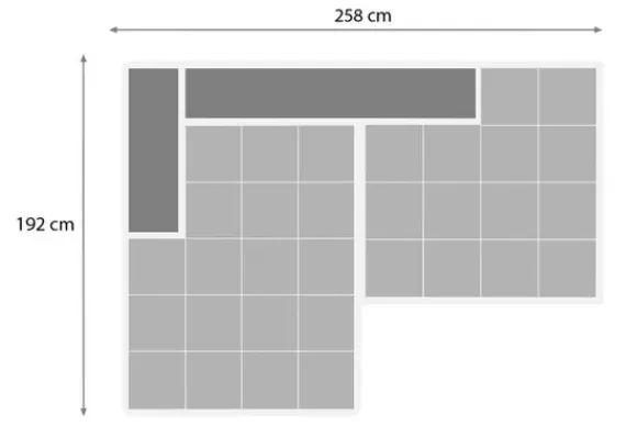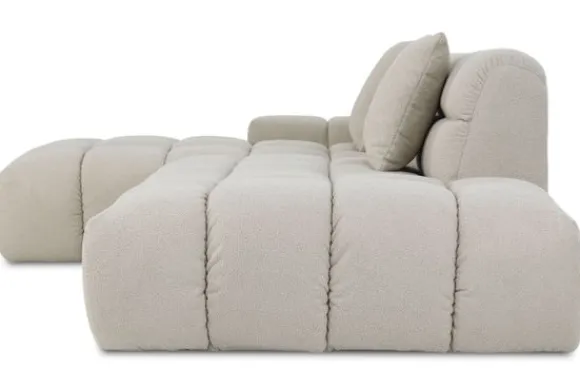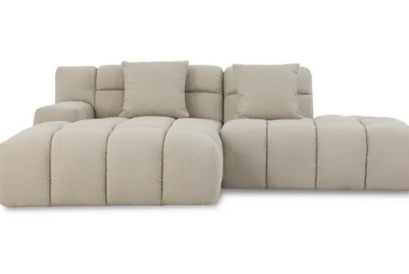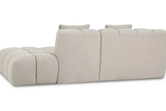 Loungebank Trentino van het merk Moderno is snel leverbaar in de opstelling longchair + 1,5 met eiland extra diep in de stof Now of Never 06. Je kunt deze bank ook in spiegelbeeld bestellen, deze opstelling vind je .