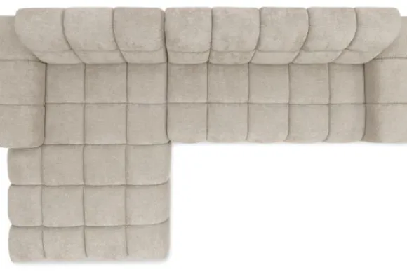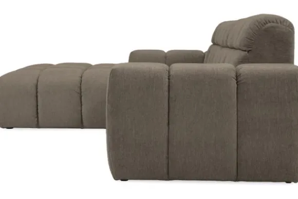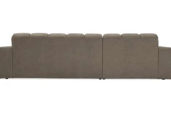 Bankstel Treviso van het merk Moderno is een bank met geblokte zit- en rugkussens en een zitting die doorloopt tot net boven de grond.