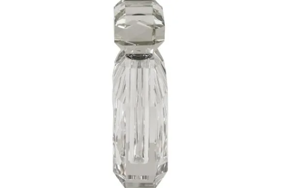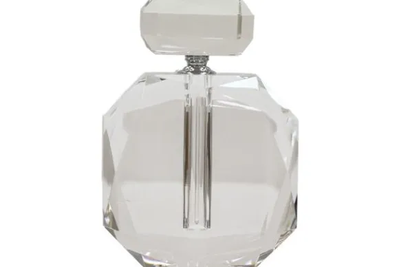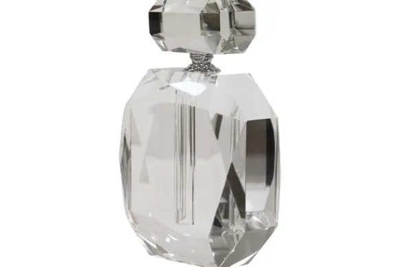 Parfumfles Khloe 215494 Transparent van het merk Richmond Interiors is een decoratieve fles met een opvallend geslepen ontwerp. De fles heeft een brede vorm met facetten die het licht op verschillende manieren reflecteren.