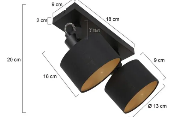 Plafondlamp Ornoir 3333ZW uit de serie Mexlite van Steinhauer is een moderne plafondspot. De lamp is voorzien van twee E14 (kleine) fittingen en is geschikt voor lichtbronnen van maximaal 40 Watt. De kappen van de plafondlamp zijn gemaakt van stof en zwart van kleur met een goudkleurige binnenkant. De lampenkappen van de lamp zijn draai- en kantelbaar en in combinatie met een geschikte lichtbron is de lamp ook dimbaar.