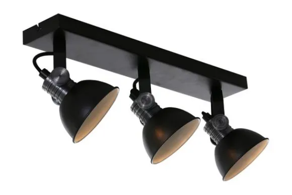 Plafondspot Brooklyn 2134ZW van het merk Steinhauer is een zwarte stoere 3-lichts plafond of wandspot uit de Brooklyn LED serie. Deze industriële spot is verstelbaar middels grove verstel knoppen. De lamp wordt inclusief GU10 LED 7 watt geleverd. De lichtbron is dim to warm en dimbaar via een externe dimmer. Dim to warm betekend dat je in kleurtemperatuur kunt dimmen, je kan dimmen van 2200 Kelvin tot 2700 Kelvin en de lichtopbrengst is 480 Lumen per lichtbron. De Brooklyn is vervaardigd uit metaal met een betonlook. Het armatuur is voorzien van een stoffen/strijkijzer kabel. De diameter van de kap is 11 centimeter en de totale hoogte van het armatuur is 12 centimeter.