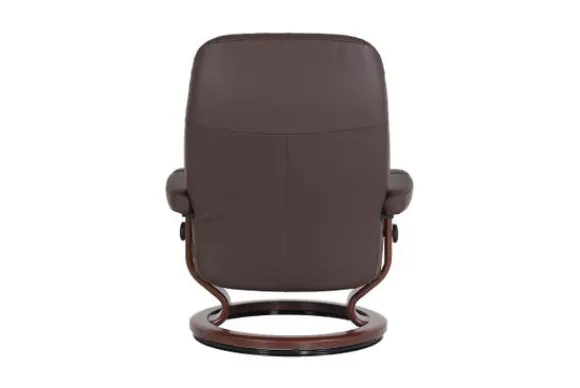 Relaxfauteuil Consul Classic van het merk Stressless is verkrijgbaar in meer dan 150 kleuren. Tevens is de fauteuil leverbaar in stof en rundleder. Je kunt bij deze fauteuil kiezen uit diverse maten zoals Small, Medium en Large. Deze fauteuil heeft een Plus en Glide Systeem: Aan beide zijden van de fauteuil zit een knop waarmee je de weerstand van de stoel kan aanpassen naar eigen behoefte. Door de knoppen in tegengestelde richting te draaien stel je jouw ideale relaxpositie samen. Op die manier krijgt de nek en de onderrug goede ondersteuning. Door de rugleuning naar voren te buigen activeer je de slaapfunctie. Op het moment dan je weer rechtop komt stelt de stoel zichzelf weer bij naar de normale stand.