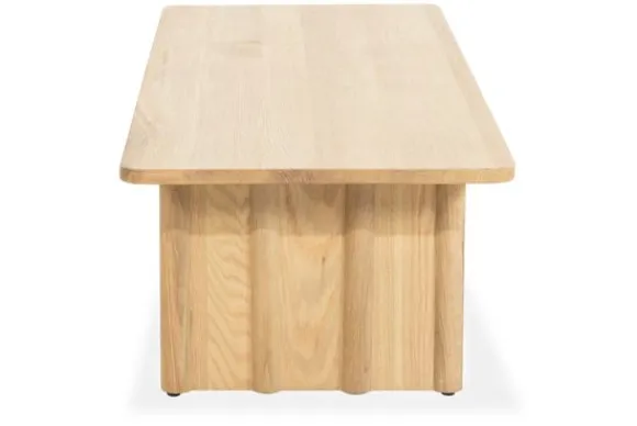 De salontafel is gemaakt van eikenhout en eiken fineer. Het tafelblad laat de natuurlijke houtstructuur goed zien. Het onderstel bestaat uit verticale lamellen die samen een stevig geheel vormen en zorgen voor een strak lijnenspel.
