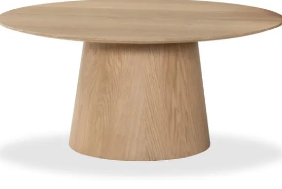 Deze salontafel is gemaakt van samengesteld hout met een toplaag van licht eikenfineer. Dit zorgt voor een stevige en duurzame tafel met een zichtbare houtstructuur.