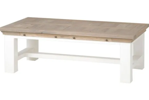 Salontafel Parma MC 0107 van het merk Tower Living wordt geleverd in de kleur wit. De eiken delen worden licht geborsteld en afgewerkt met een olie. Je kunt dit hout makkelijk schoonmaken met een zachte vochtige doek. De tafel heeft uitschuifbare planken, waardoor je de tafel breder kan maken wanneer er bijvoorbeeld visite is.