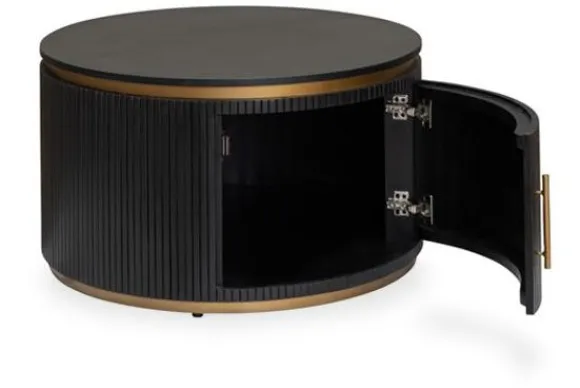Salontafel Rivello NL 0034 van het merk Tower Living is gemaakt van mangohout. Mangohout kun je herkennen aan de vele kleurschakeringen en ongelijkheden in het oppervlakte van het hout, waardoor geen enkel meubelstuk hetzelfde is. De kleuren in mangohout kunnen variëren van lichte- tot donkere tonen. De ronde salontafel heeft een deur met een opbergruimte. De zwarte kleur met gouden accenten is een stijlvolle en elegante toevoeging aan elk interieur.