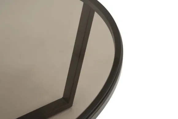 Salontafel Sian van het merk BL Design is een ronde salontafel met een diameter van 80 cm. Deze uitvoering heeft een tafelblad in Smoked Brown glas en staat op een anodic brown metalen driepoot.