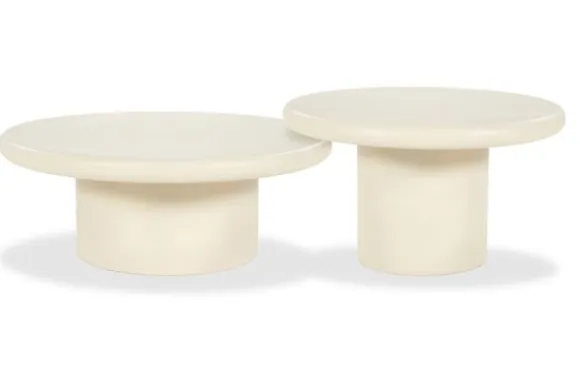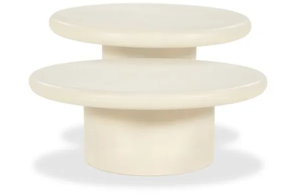 Salontafelset Jade van het merk Eleonora is een toonbeeld van hedendaagse elegantie en ingetogen luxe. De sculpturale vormen, vervaardigd uit lichtgewicht Magnesium Oxide, creëren een harmonieuze balans tussen stevigheid en verfijning. De royale ronde bladen rusten op krachtige tonvormige onderstellen, afgewerkt in een matte beige tint die een tijdloze en serene uitstraling geeft.