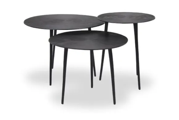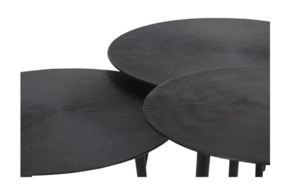 Salontafelset Nobby IV-52.016 van het merk Label51 is een set tafels gemaakt van robuust gegoten metaal, uitgevoerd in de kleur Zwart. De tafelset bestaat uit drie tafels met ieder een eigen grootte en hoogte. De tafels zijn voorzien van speelse uitlopende pootjes die zorgen voor extra stevigheid. De top is voorzien van een prachtige gravure; lijnen vanuit het centrum lopend naar de buitenkant. De speelse uitlopende poten zorgen voor stevigheid en een hip uiterlijk.