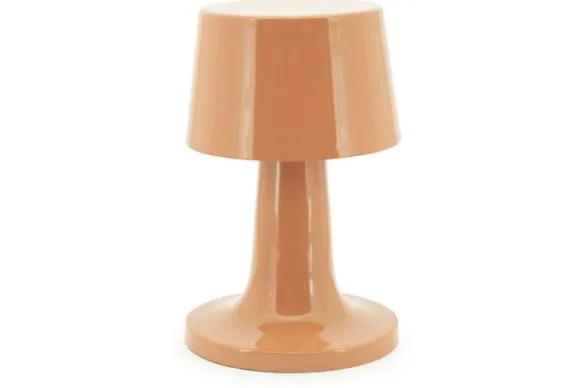 De minimalistische, vloeiende vormgeving en de warme terracotta tint maken deze tafellamp tot een subtiele blikvanger. De hoogglanzende afwerking reflecteert het licht op een zachte manier, waardoor een sfeervolle ambiance ontstaat.