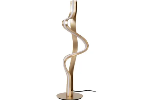 Tafellamp Lambada van het merk Lucide is een ware dans van licht en vorm. Met haar sierlijk golvende lijnen en luxueuze gouden afwerking roept ze een beeld op van vloeiende elegantie – alsof het licht zelf in beweging is. Het sculpturale design, uitgevoerd in lichtgewicht pvc, maakt van Lambada een artistiek object dat meteen de aandacht trekt.