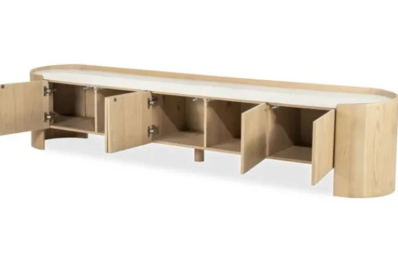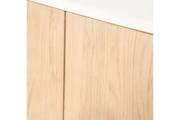 Tv-meubel Don 96366 van het merk Eleonora is een toonbeeld van hedendaagse elegantie, verrijkt met natuurlijke details en verfijnde materialen. Met zijn afgeronde hoeken, minimalistische belijning en harmonieus design straalt dit tv-meubel rust en verfijning uit. Het meubel is vervaardigd uit massief eikenhout, met een subtiel glanzend blad van wit marmer dat een luxueuze, lichte toets toevoegt.