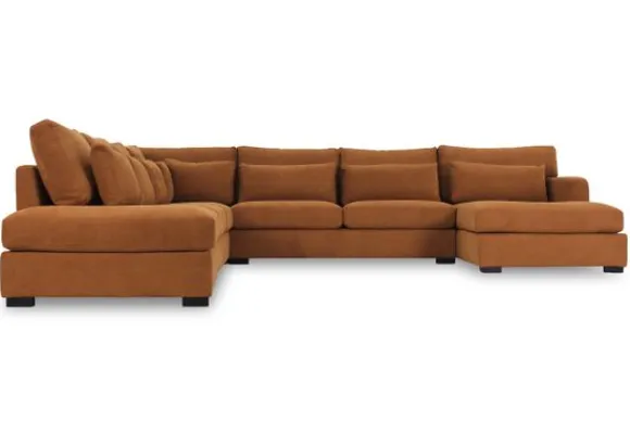 Naast comfort en design biedt de Frederique slimme functionaliteiten voor de ultieme relax ervaring. De 2-zitselementen kunnen worden uitgerust met een slaap-/Netflixfunctie, waardoor de bank in een handomdraai transformeert tot een royale loungeplek of extra slaapplek. Optionele extra opbergruimte is te vinden in het longchair element, waarbij de zitting omhoog geklapt kan worden om dekens, kussens of andere accessoires netjes op te bergen. Ook kan je kiezen voor rechte rugkussens voor een moderne, strakke look of T-vormige kussens die sierlijk over de armleuning vallen en de bank een nonchalante, uitnodigende uitstraling geven.