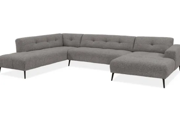 Hoekbank Kanso van het merk Elitosa is een moderne bank met een luchtige en open uitstraling. De elegante, rechte lijnen en lage rugleuning zorgen voor een eigentijdse look die perfect past in een stijlvol interieur.