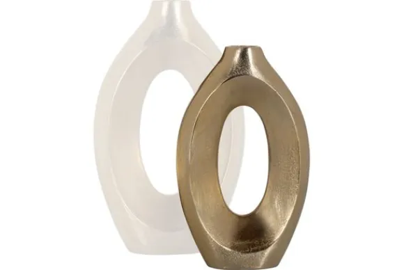 Vaas Alma 211153 van het merk Richmond Interiors is een opvallend decorstuk met een organische vorm. De open structuur en glanzende gouden afwerking zorgen voor een luxe uitstraling die perfect past binnen een hotel chic interieur.