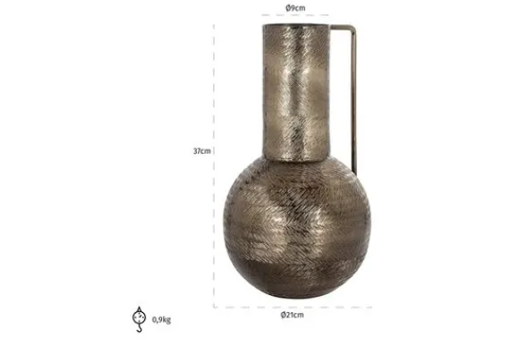 Vaas Leia 211759 groot van het merk Richmond Interiors is vervaardigd uit aluminium. Deze vaas past perfect in een luxueuze elegante interieurstijl, door de rookzwarte kleur en de details op de vaas. Tip: combineer deze vaas met de Leia voor de complete look!