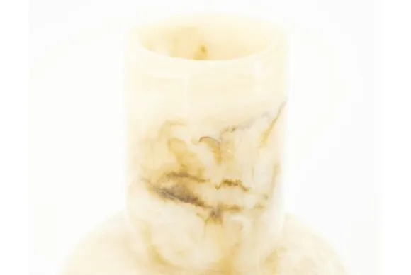 De organische lijnen en zachte kleurverloop van de Vaas Yaba doen denken aan gepolijste steen.