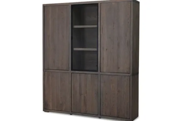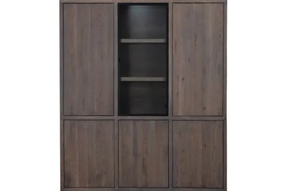 Vitrinekast Established van het merk Van Dijk Furniture is verkrijgbaar in verschillende kleuren 100% massief eikenhout. Eikenhout leeft en geeft hierdoor karakter aan jouw meubelstuk. Daarnaast is elk stuk uniek door de nerven en noesten. Deze kast heeft onderin drie dichte deuren, hierboven drie open vakken achter een glazen deur en daarnaast nogmaals twee dichte deuren. Veel display en opbergmogelijkheden dus! De dichte deuren zijn te openen met een push to open systeem. De kast is ook verkrijgbaar met LED-spots, dit is optioneel.