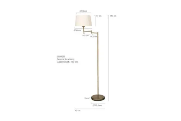 Vloerlamp 5894BR Mexlite van het merk Steinhauer is een bronskleurige vloerlamp met een creme kleurige stoffen kap. De zwenkarm zorgt ervoor dat deze lamp precies licht geeft waar dit gewenst is. De lamp is te bedienen door middel van een aan/uit schakelaar onder de stoffen kap. De lamp heeft een E27 fitting en is geschikt voor spaarlampen, LED en gloeilampen.