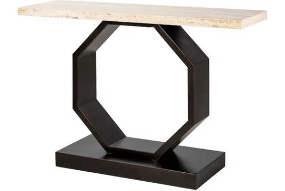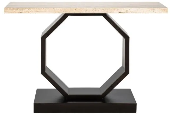 Wandtafel Avalon 211701 van het merk Richmond Interiors heeft een blad vervaardigd uit travertijn. Travertijn is een kalksteen die gevormd wordt door de neerslag van kalk uit oververzadigd water uit warme bronnen. Het kenmerkt zich door diverse warme kleurschakeringen die uiteenlopen van een warm beige kleur tot een diepe bruine gloed. Het onderstel is vervaardigd uit zwart metaal in de vorm van een achthoek. Deze wandtafel is geschikt voor de woonkamer, slaapkamer, maar ook kleinere ruimtes zoals de hal en een echte eyecatcher in jouw interieur!