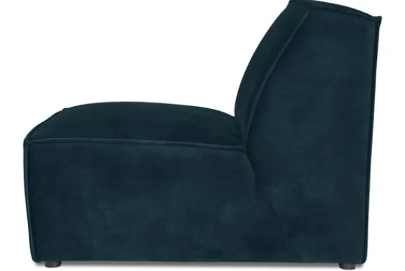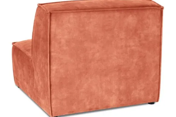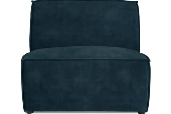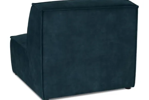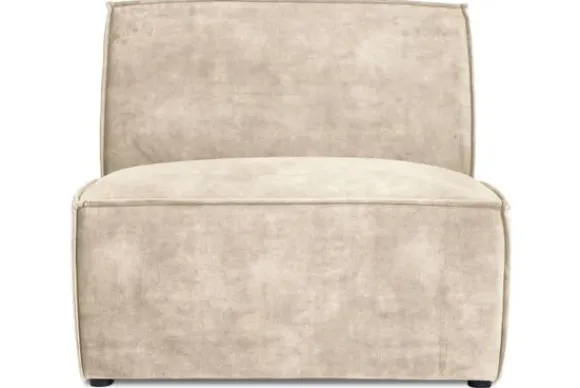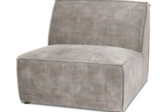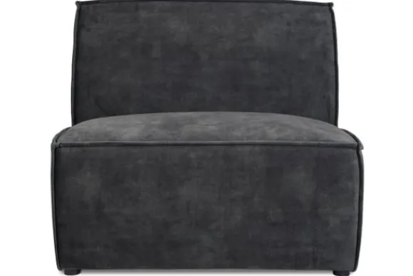 Zitelement Loki van het merk Dakota Industrial oogt robuust door de vaste kussens en de zitting die doorloopt tot net boven de grond. De stoel heeft diepe zittingen en is afgewerkt met geknepen naden.