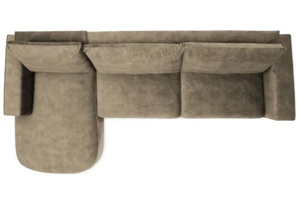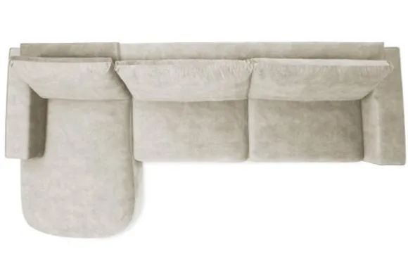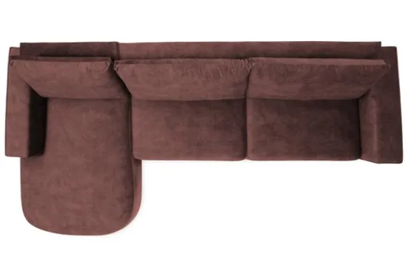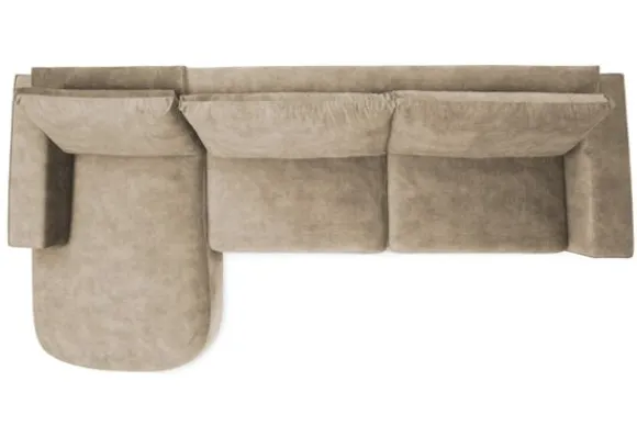 Bij de bank zijn een bijpassend sierkussen en een rechthoekige poef verkrijgbaar. De poef dient als extra zitplek en als stijlvolle aanvulling op de organische vormen.