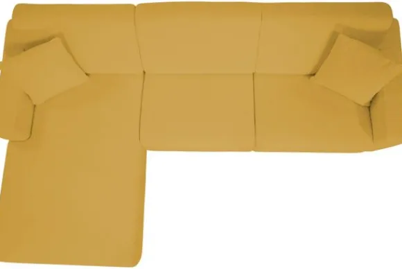 Deze bank wordt exclusief poef geleverd, maar inclusief sierkussens. Een poef is bij te bestellen onder de ‘Extra opties’.