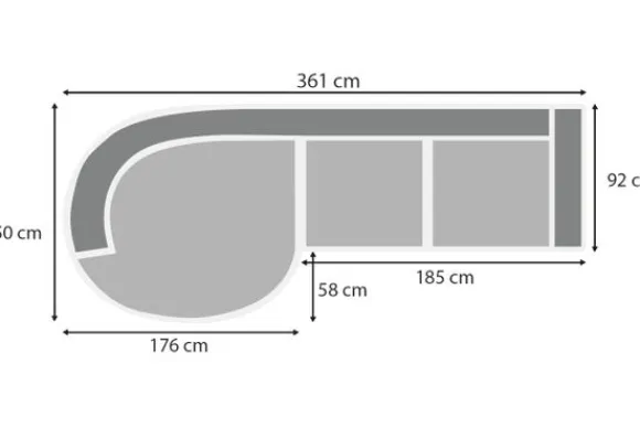 Loungebank Dordoni van het merk Be Inspired is snel leverbaar in de opstelling divan + 2,5 in de stof Tiffany 05. De Dordoni bank wordt standaard uitgevoerd met alle sierkussens en lendekussens die ook op de foto te zien zijn. De rugkussens daar achter zijn lekker hoog, deze combinatie zorgt voor een goede ondersteuning van de rug. Alle rugkussens zitten los en zijn omkeerbaar, de zitkussens zitten vast met klittenband. Het unieke aan de Dordoni is het ronde loungegedeelte. Je kunt hier lekker wegkruipen tussen alle sierkussens. Deze bank oogt ruimtelijk door de hoge metalen sledepoten.