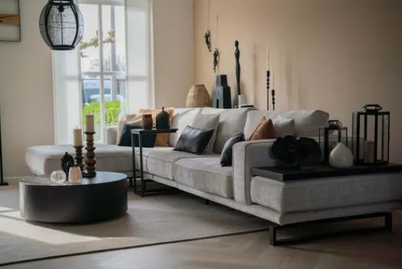 Loungebank Kansas van het merk Be Inspired is snel leverbaar in de opstelling 2,5 + longchair in de stof Tokio 170. De Kansas is voorzien van een unieke zwarte poot die lekker opvalt. De bank heeft brede armleuningen en rugkussens die worden ondersteund met een rolkussen aan de achterkant. Deze bank wordt geleverd inclusief de sierkussens.