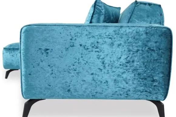 Deze bank wordt standaard uitgevoerd met zwarte metalen pootjes en exclusief sierkussens.