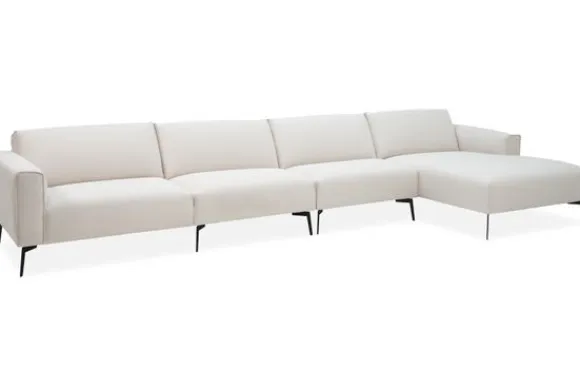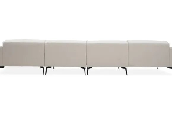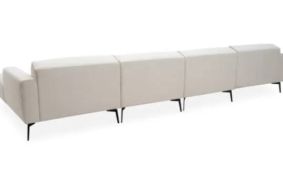 Loungebank Romi van het merk Gabanna is uit voorraad leverbaar in de opstelling 1,5+1,5+Longchair in de stof Board 102 met een koudschuim zitvulling en zwart metalen poten.