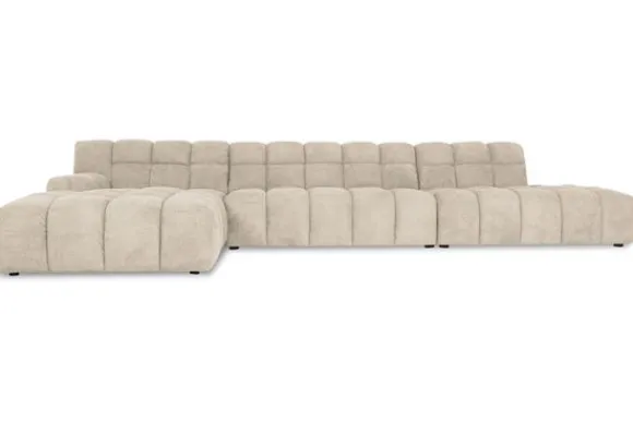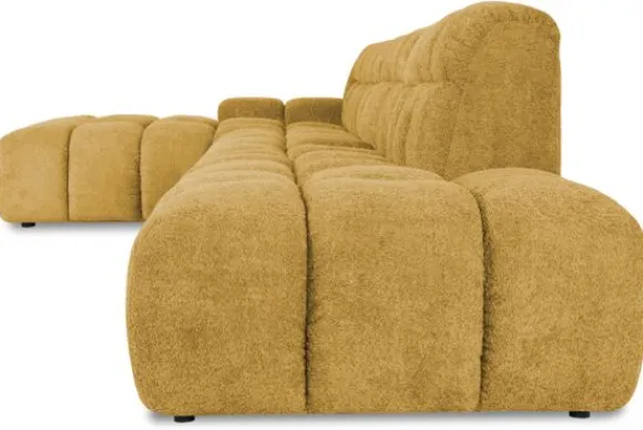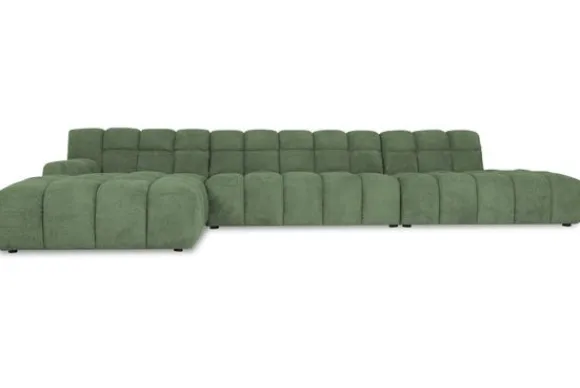 Je kunt kiezen uit verschillende materialen, waaronder stoffen als velvet en boucle. Daarnaast is de bank verkrijgbaar in uiteenlopende kleuren.