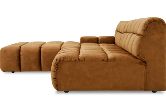 Je kunt kiezen uit verschillende materialen, waaronder stoffen als velvet en boucle. Daarnaast is de bank verkrijgbaar in uiteenlopende kleuren.