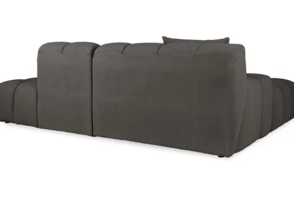 Bankstel Trentino van het merk Moderno is een bank met geblokte zit- en rugkussens en een zitting die doorloopt tot net boven de grond.