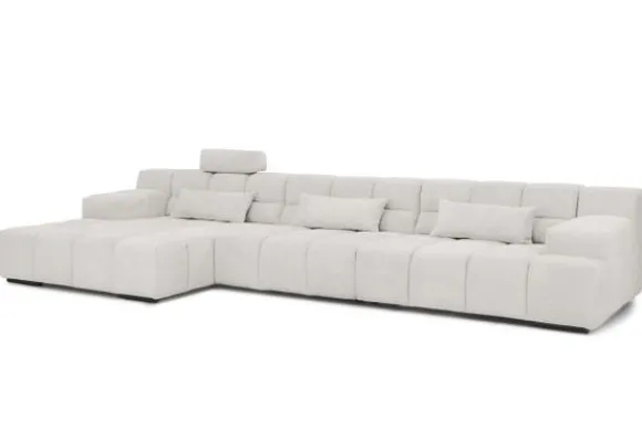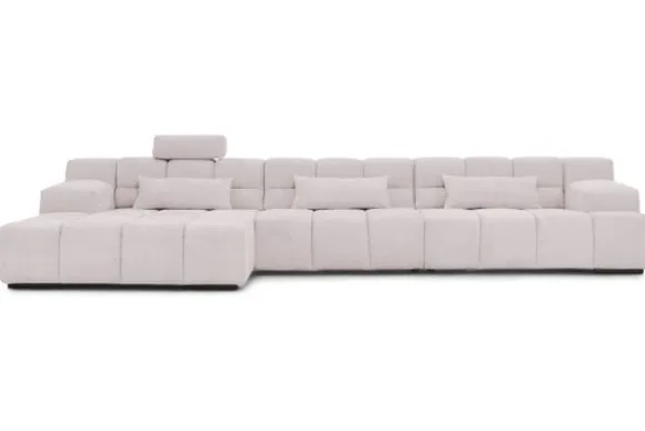 Dit bankstel is samen te stellen in vele afmetingen en verschillende opstellingen, of kies uit een van de standaard opstellingen. Ook kan je kiezen uit mat zwarte of chroom pootjes en zijn er bijpassende hoofdsteunen, sier- en lendekussens en poefjes beschikbaar. Deze worden uitgevoerd in dezelfde stof als de bank.