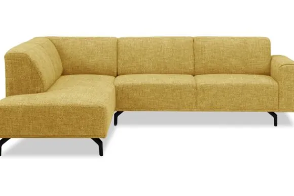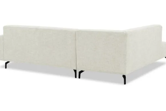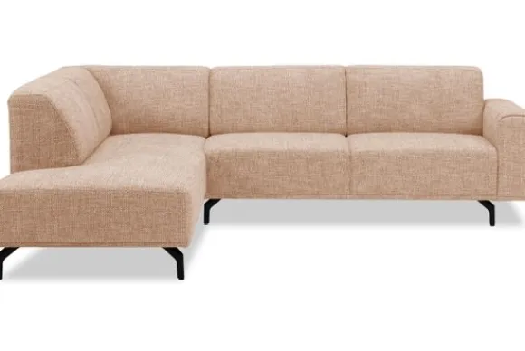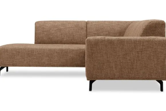 Hoekbank Bastiaan van het merk Canape Marant heeft een strakke vormgeving met subtiele rondingen in de rug- en armleuningen die zorgen voor een uitnodigend karakter. De zwarte metalen poten tillen de bank letterlijk en figuurlijk naar een hoger niveau en geven een luchtig effect.